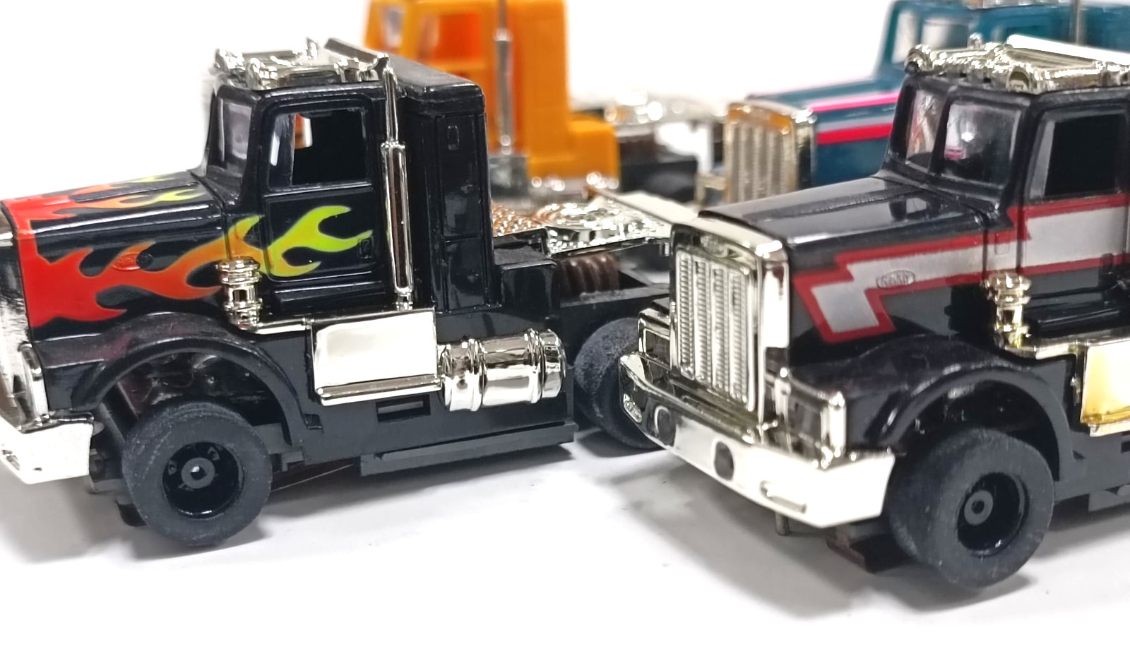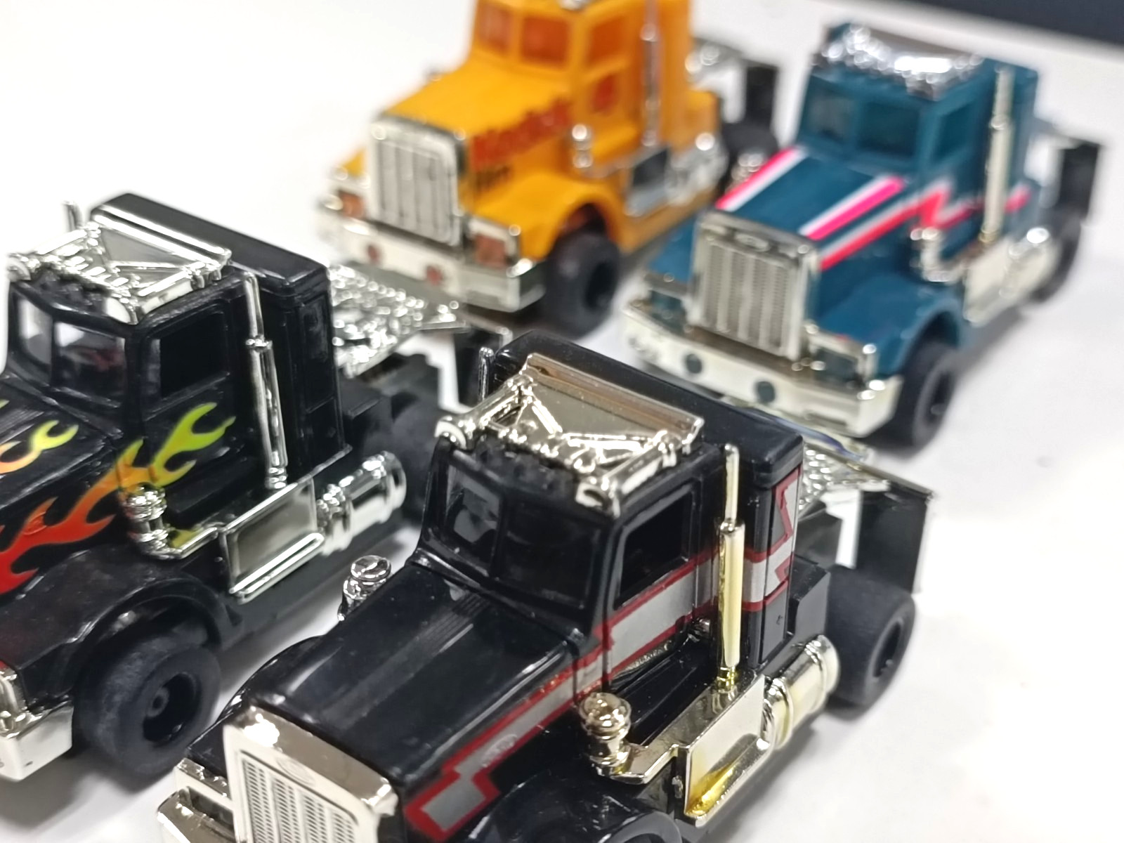 TYCO Peterbilt cabs with custom chassis lot of 4 trucks/unused.