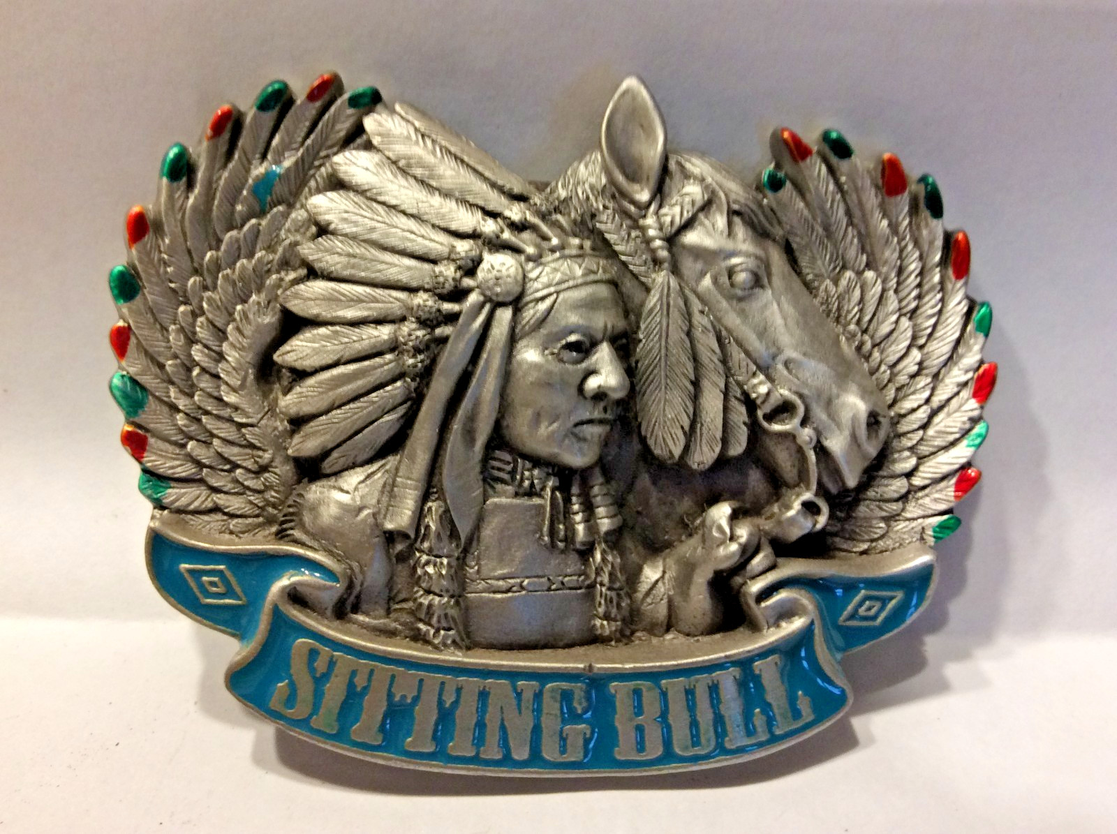 SITTING BULL BELT BUCKLE LAKOTA CHIEF PEWTER ENAMEL NEW -