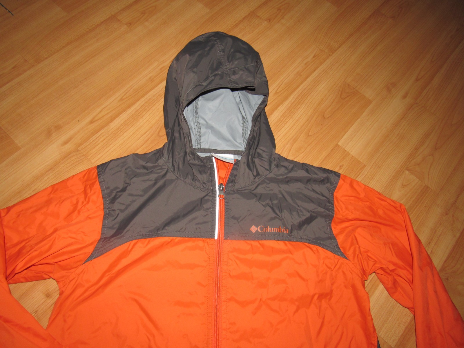 как выглядит COLUMBIA Boys Large 14 16 Jacket Windbreaker Hooded Orange Gray Full Zip EUC фото