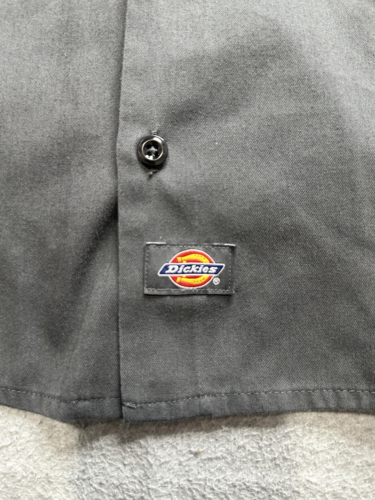 Dickies Shirt Mens Large Charcoal Long Sleeve Work Button Up Two Pocket WL675CH