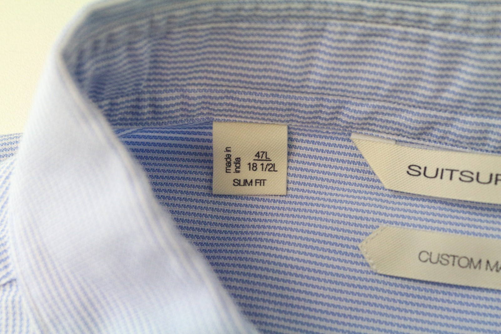 как выглядит SUITSUPPLY Mens Shirt 47L/18.5L Slim Blue Striped Pure Cotton Dress Shirt фото