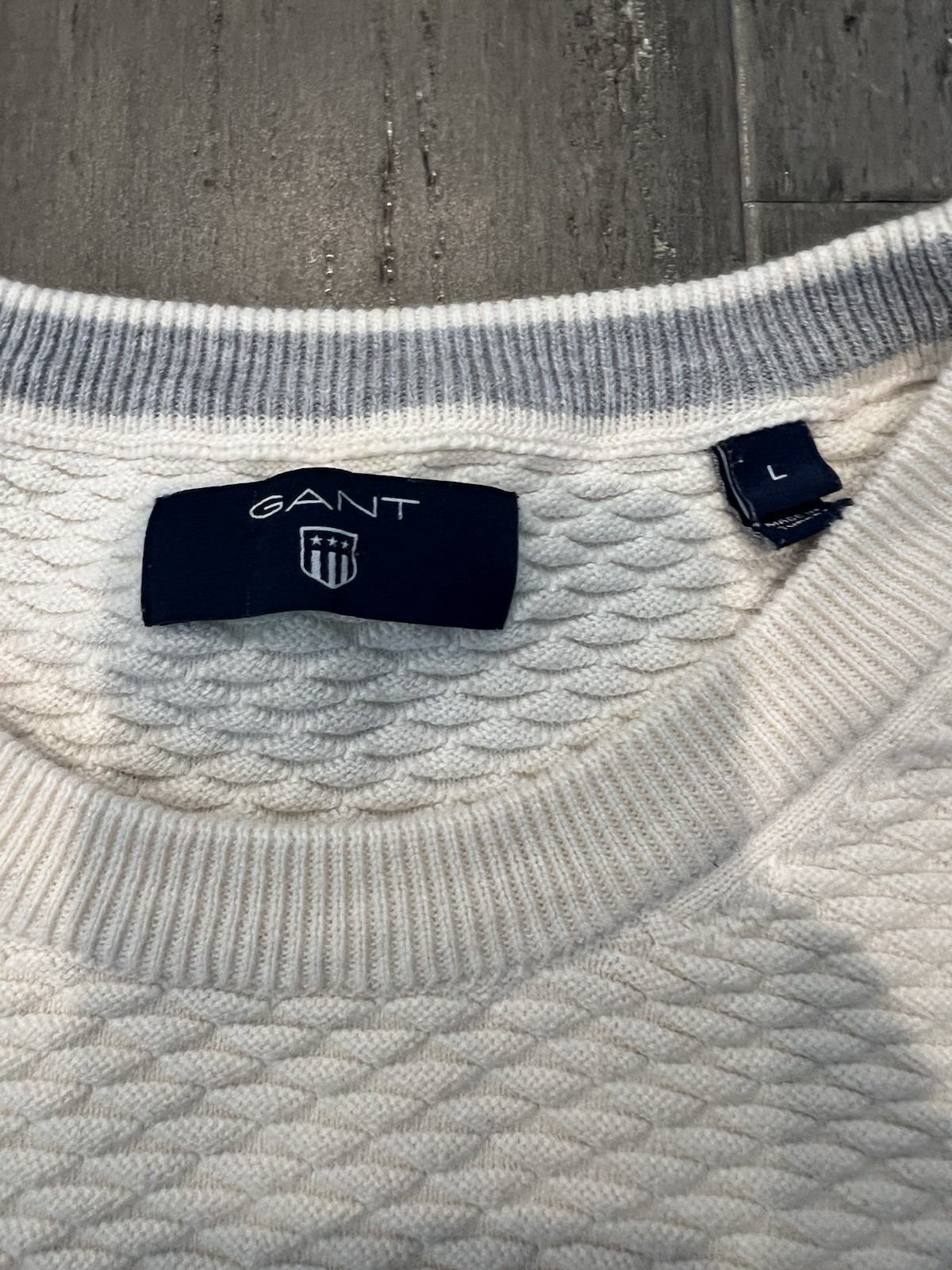 GANT Mens Ivory Textured Crew Neck Sweater Pullover Size L