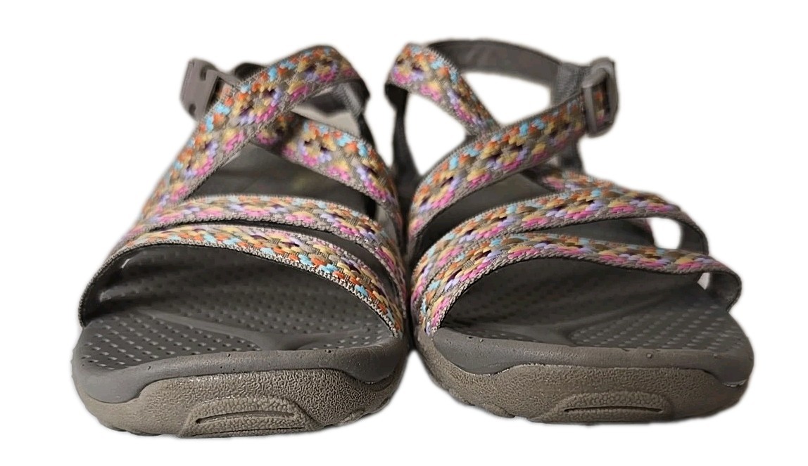 как выглядит Skechers NWOB Womens Reggae Dream Weaver Taupe Multi Sandals Size 7 NEW фото
