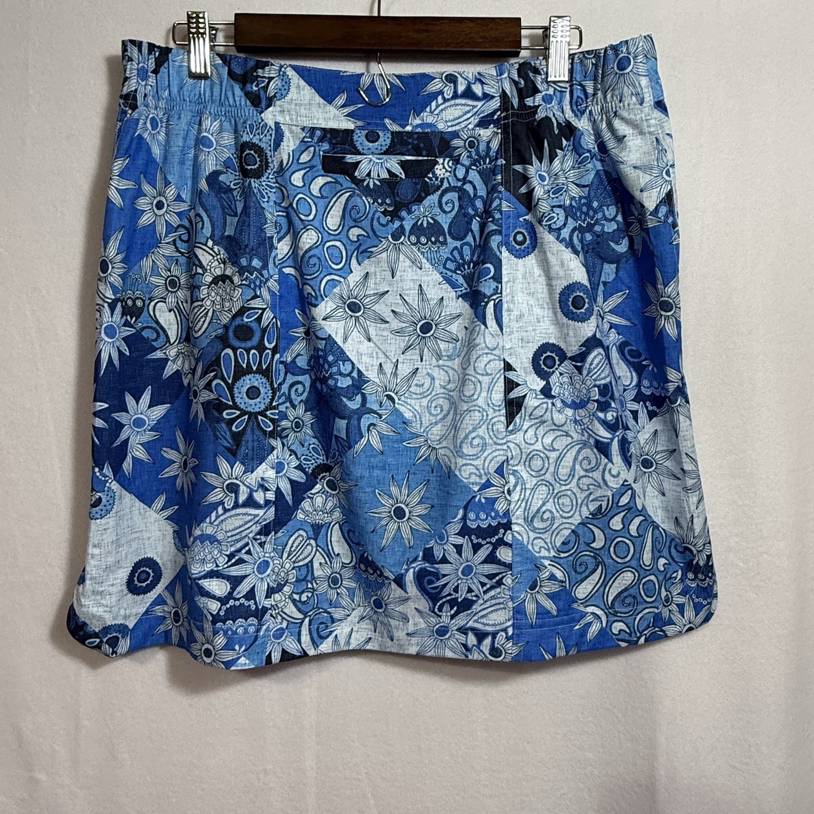 RipSkirt Blue Floral Paisley Patchwork Pull On Skirt Women L Hawaii Swim Pockets