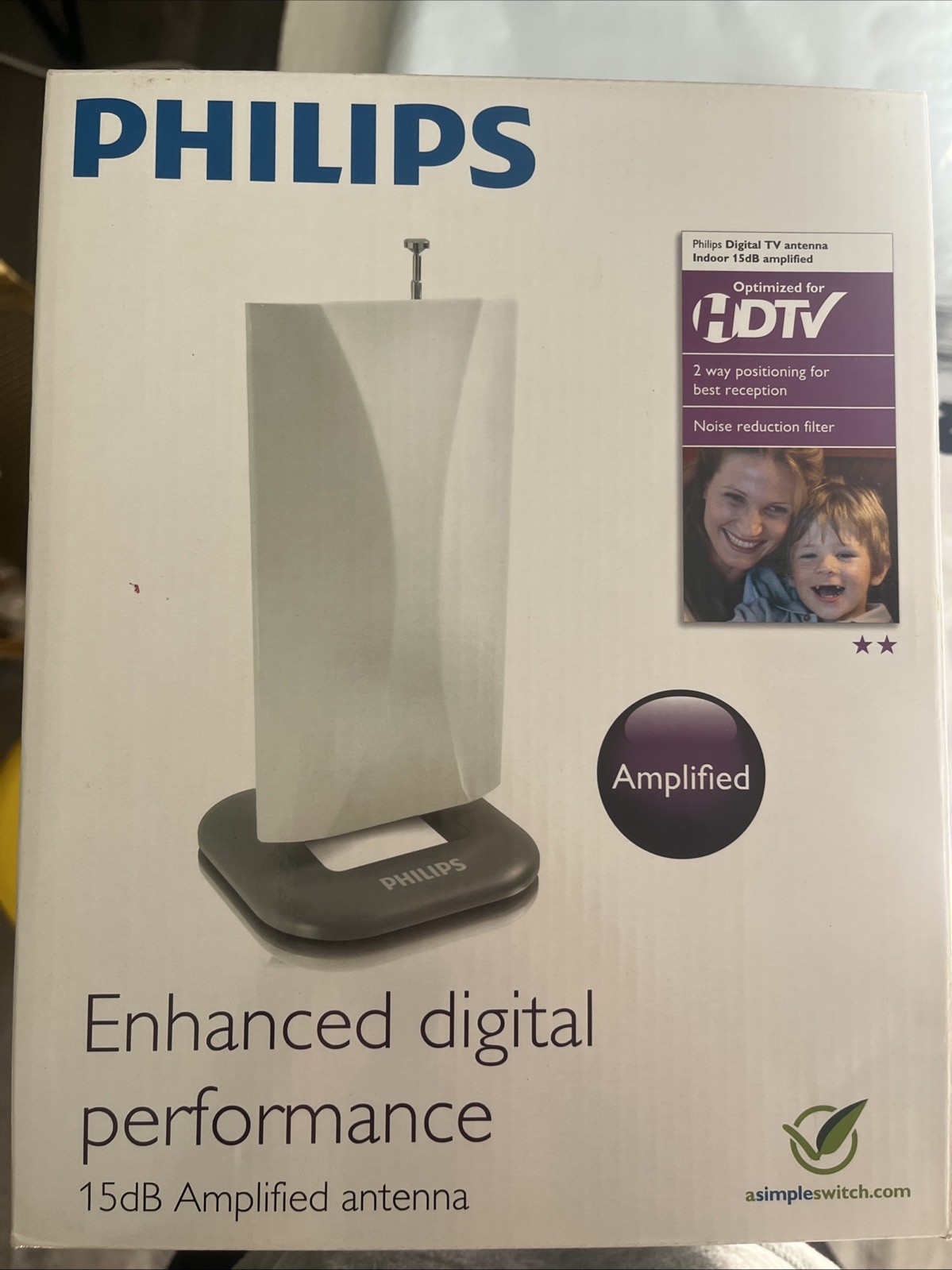 Phillips Digital TV Antenna 15 dB Amplified Enhanced Performance Indoor HDTV