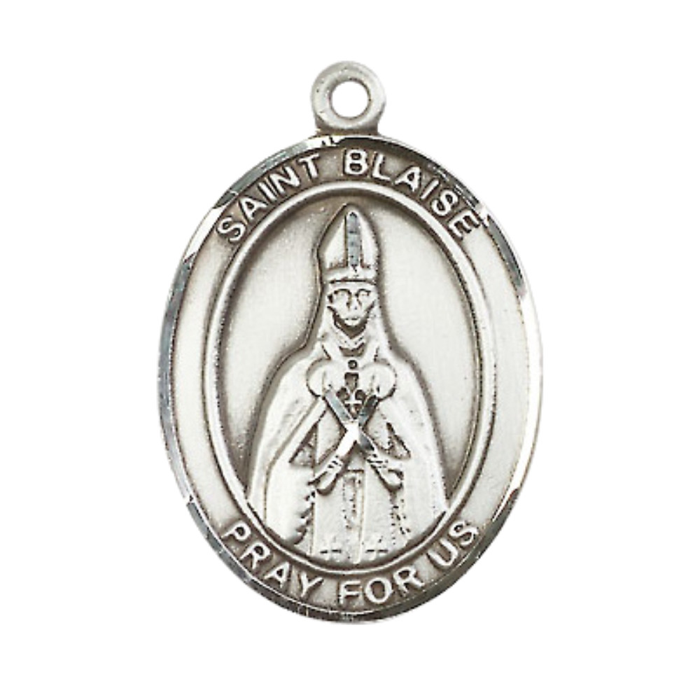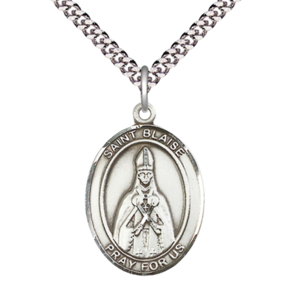 Large Pewter Saint Blaise Pendant Necklace 24 Inch Chain Prayer Card