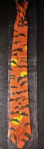 Halloween Neck Tie By Magic Creations Orange Black Bats NIB Vintage 1997 18x3