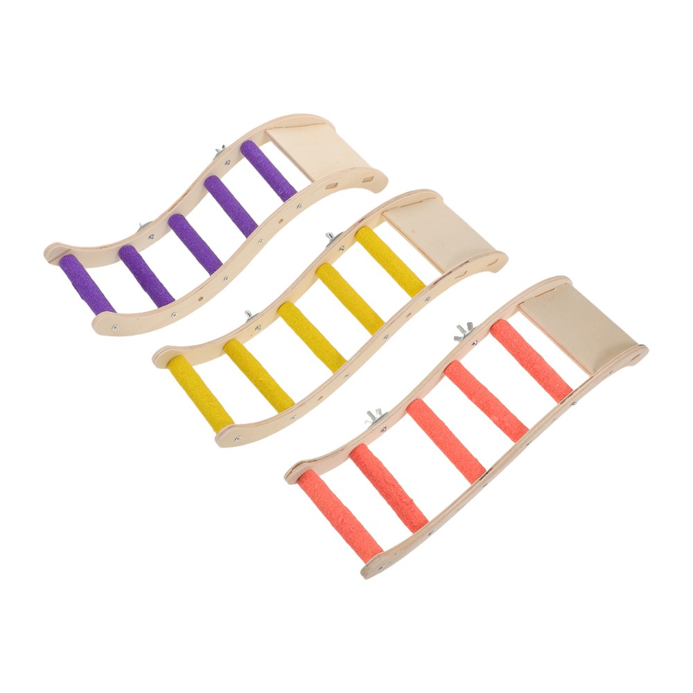 3pcs Parrot Toy Swing Ladder - Colorful Wooden Bird Ladder Toy Staircase -