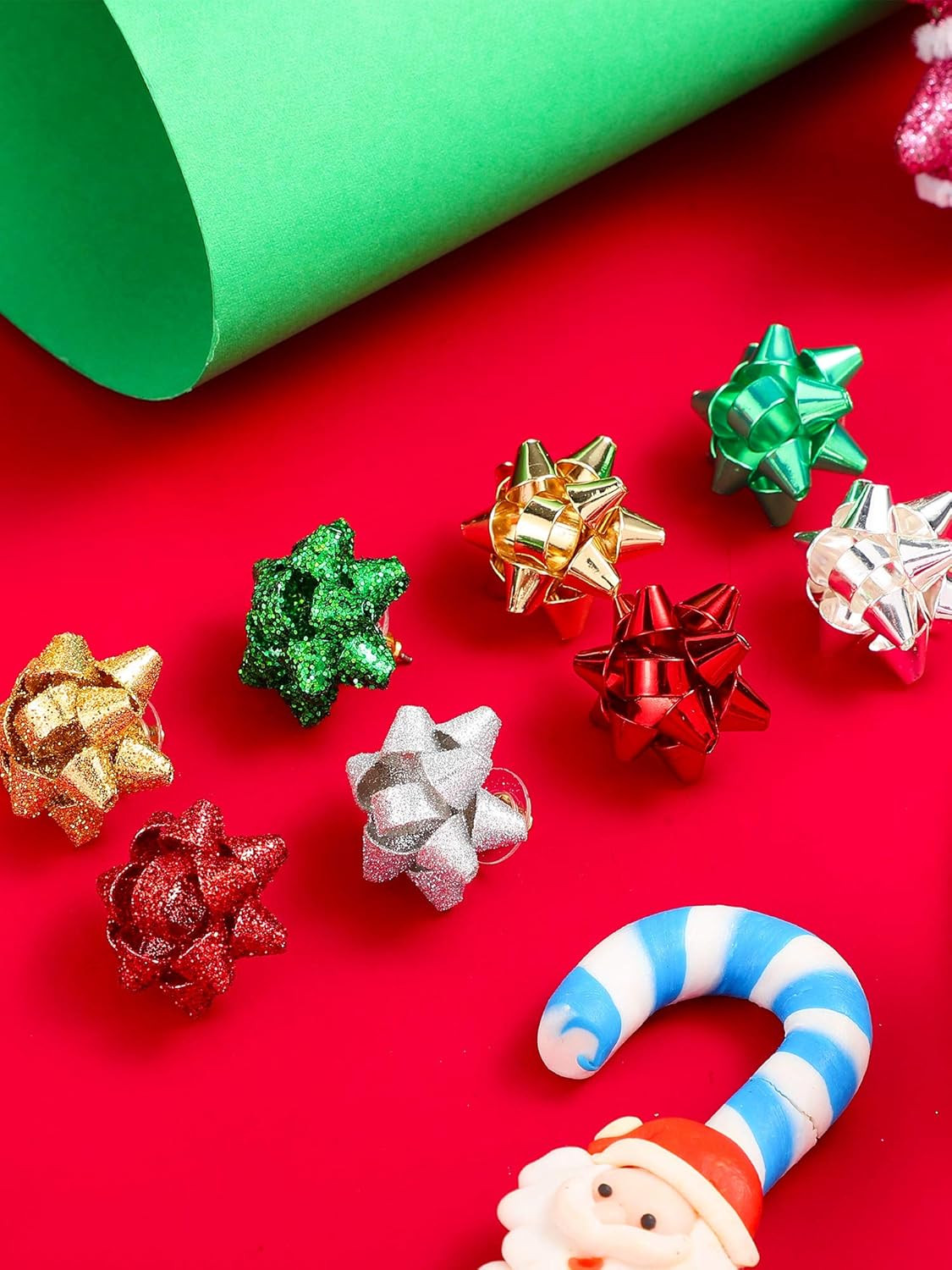 как выглядит 8 Pairs Christmas Bow Earrings Glitter Xmas Bow Stud Earrings Holiday Christmas фото