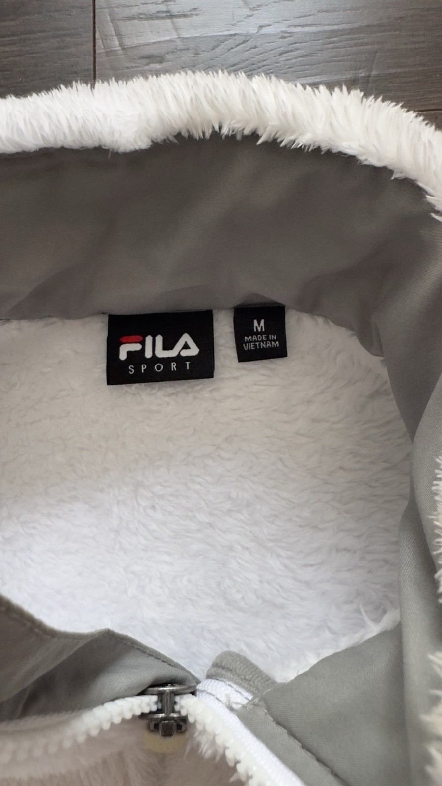 EUC Fila sport Fuzzy White Fleece Jacket Coat Women M