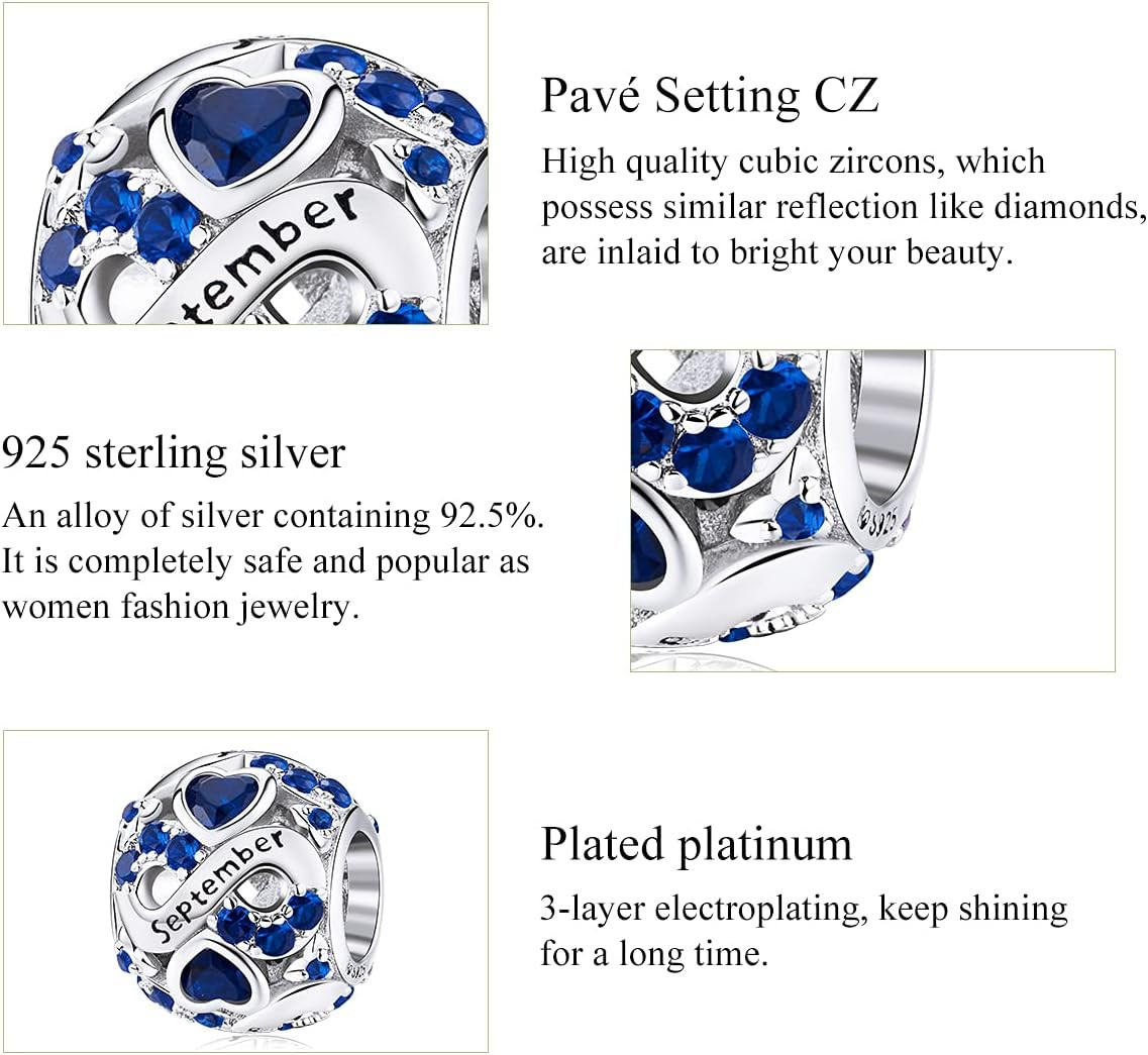 Birthstone Charm Jewelry 925 Sterling Silver Infinity Love Heart Charm Openwork