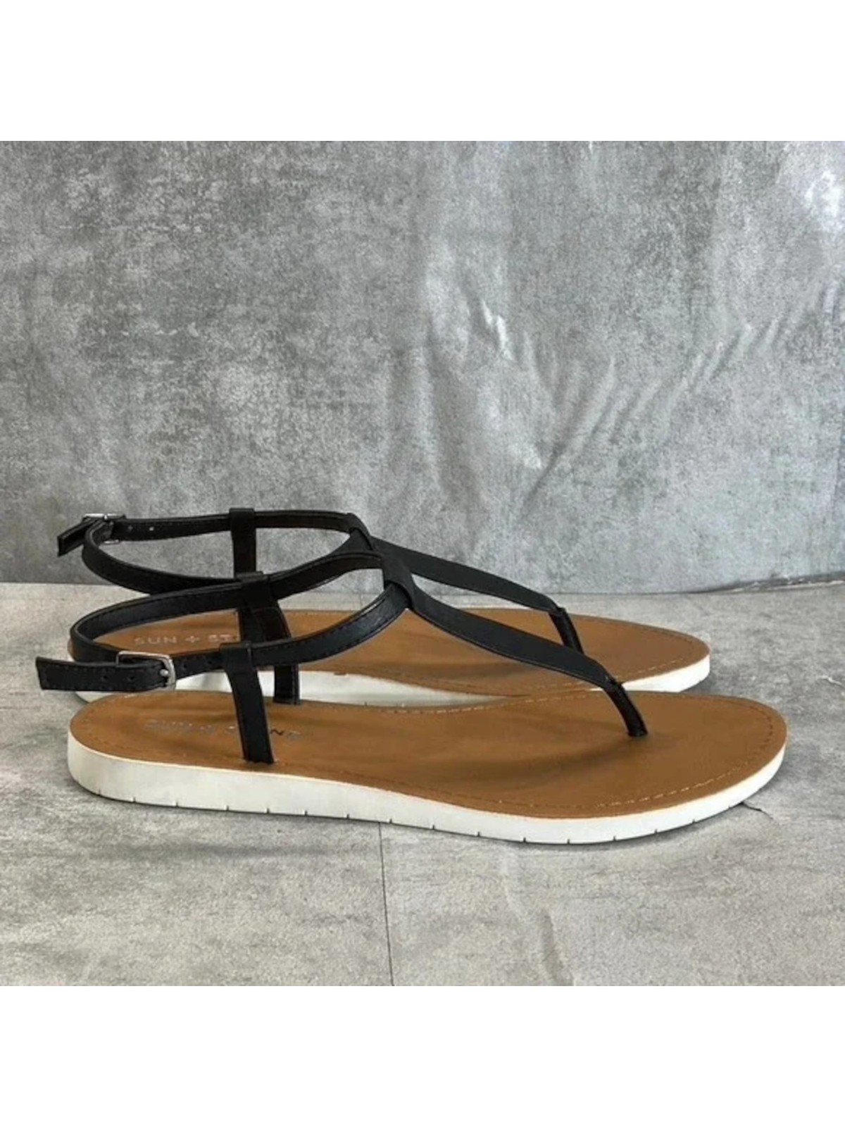 как выглядит SUN STONE Womens Black Kristi Round Toe Buckle Slingback Sandal 7 W фото