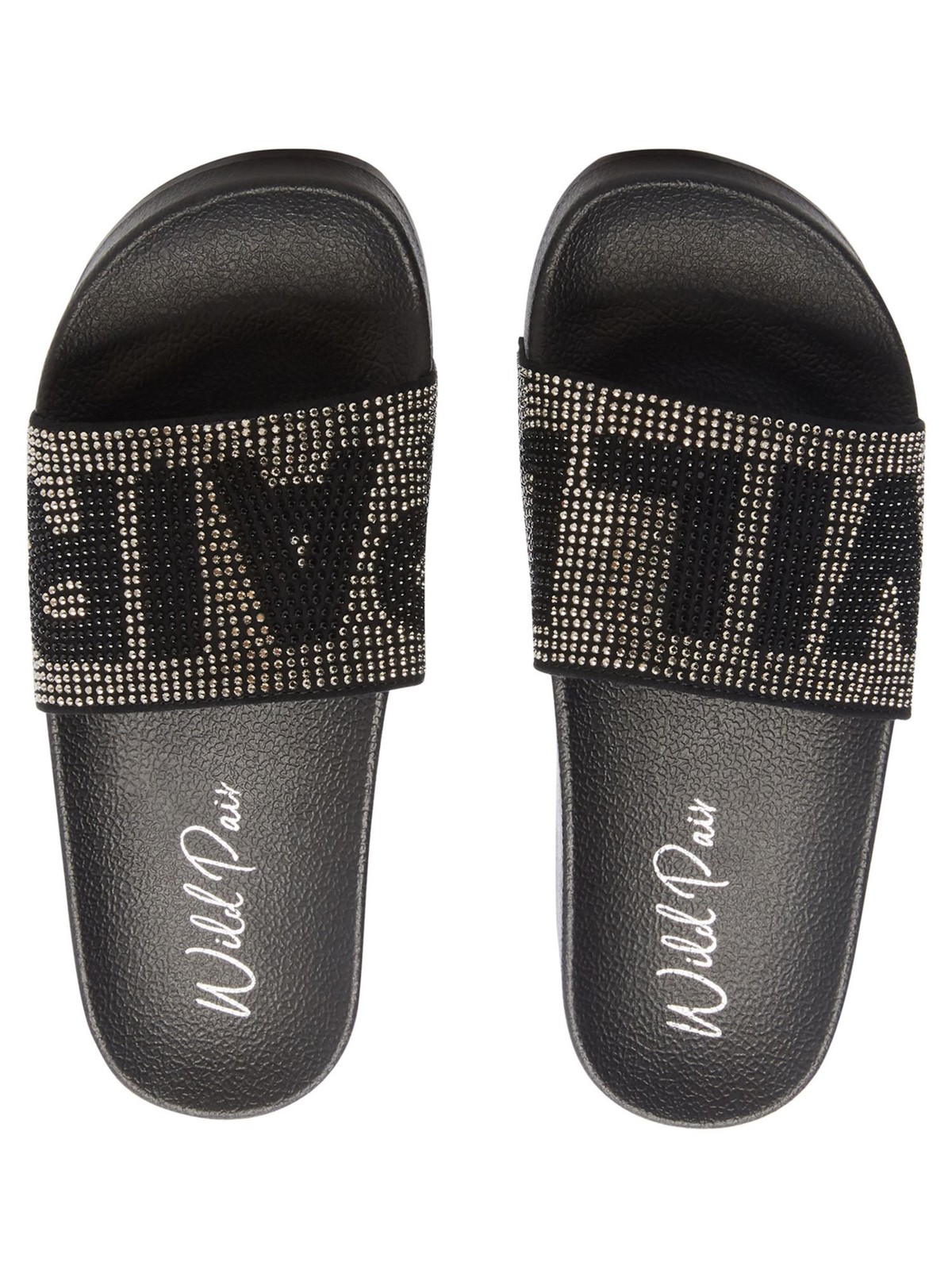 как выглядит WILD PAIR Womens Black Caroletta Round Toe Platform Slip On Slide Sandals 7 M фото