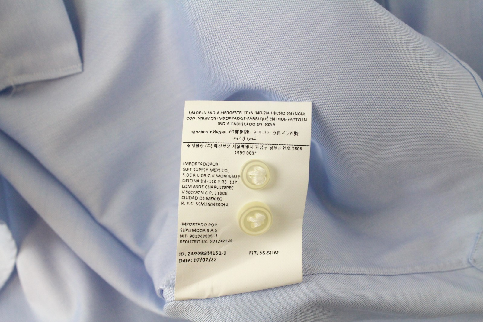 как выглядит SUITSUPPLY Mens Formal Shirt M Light Blue Cotton Slim Classic Cutaway Fit фото