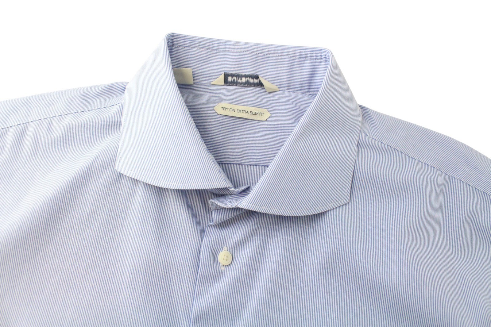 как выглядит SUITSUPPLY Mens Formal Shirt 45/17.75 Blue Cotton Striped Slim Extra Fit Try On фото