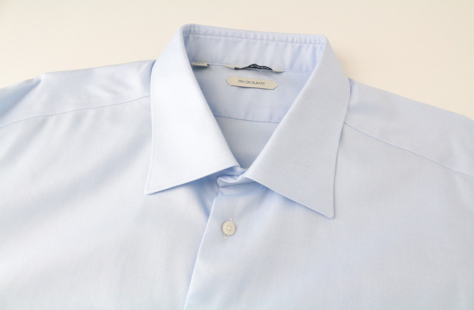 как выглядит SUITSUPPLY Mens Formal Shirt 46/18 Light Blue Slim Fit Melange Pure Cotton фото