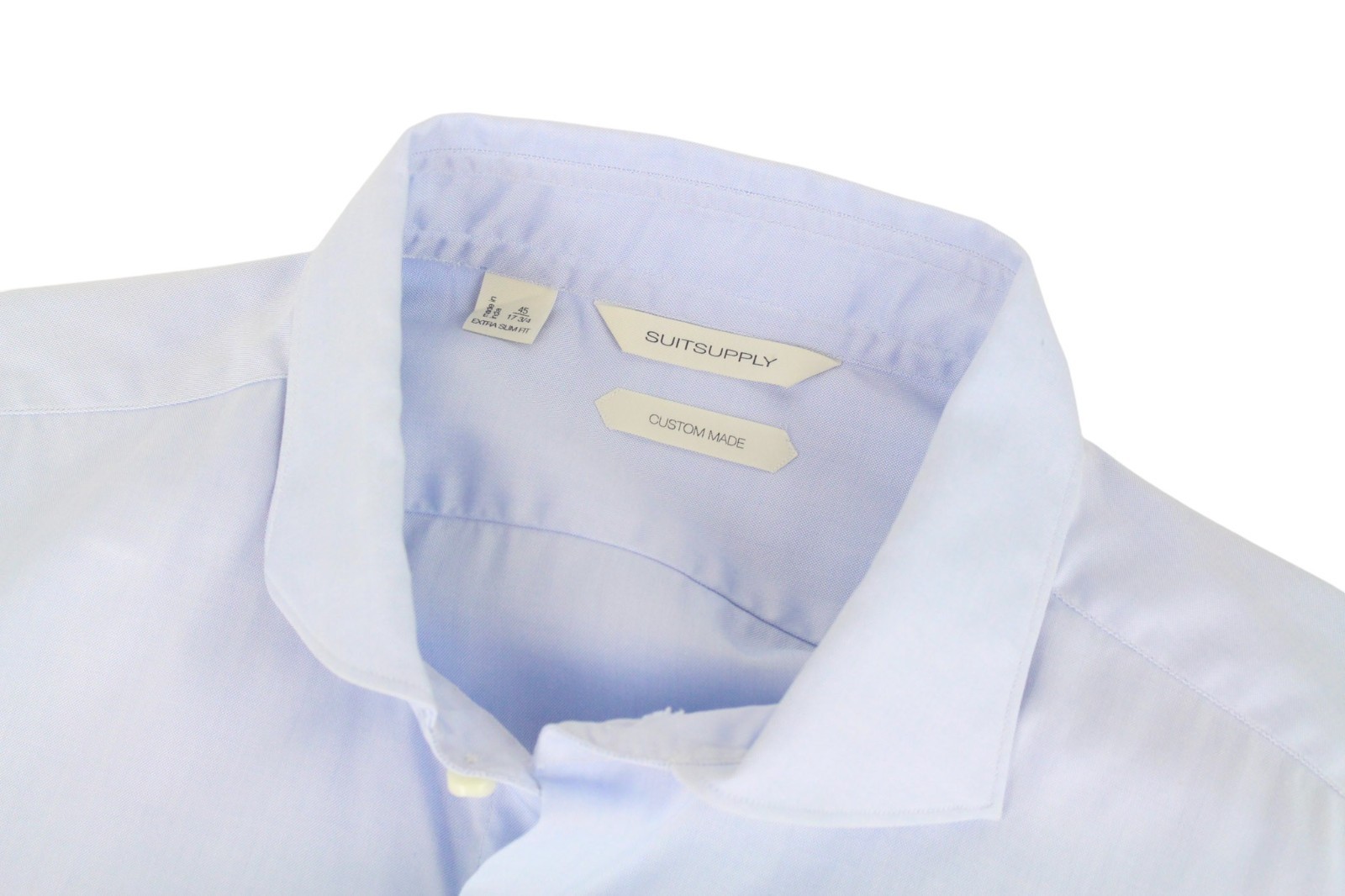SUITSUPPLY Men's Formal Shirt 45/17.75 Blue Cotton Extra Slim Cutaway Collared