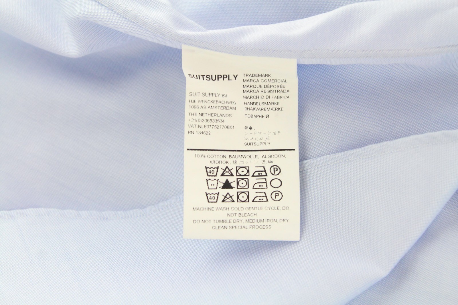 как выглядит SUITSUPPLY Mens Formal Shirt 45/17.75 Blue Cotton Extra Slim Cutaway Collared фото