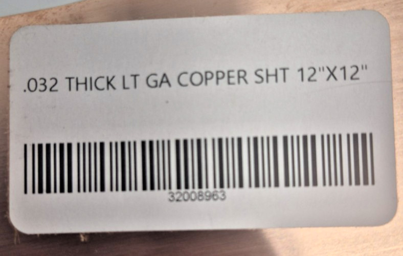 Copper Sheet 0.032 Thick x 12 Square, Alloy 110