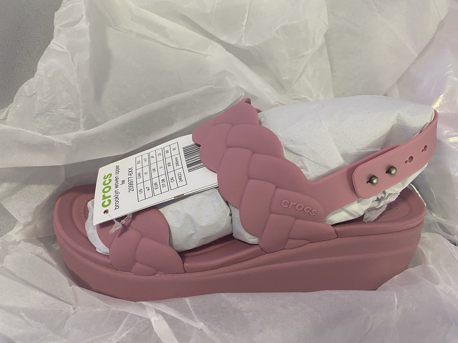 как выглядит Crocs Brooklyn Woven Low Wedge sandals Size 7w Rosette фото