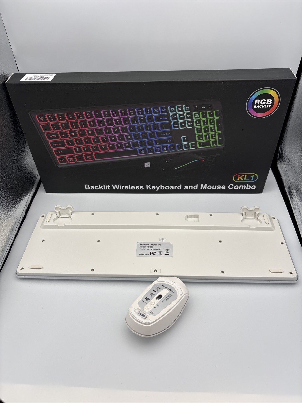 Wireless Keyboard and Mouse Combo - RGB Backlit, Rechargeable Lights Up-White