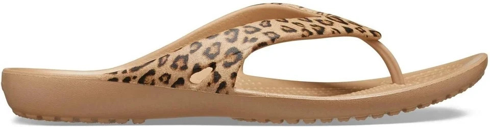 как выглядит Crocs Leopard Kadee II Thong Flip Flops Womens Size 8 Beige Animal Print - NWT фото