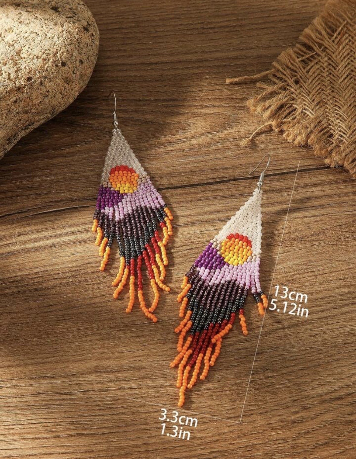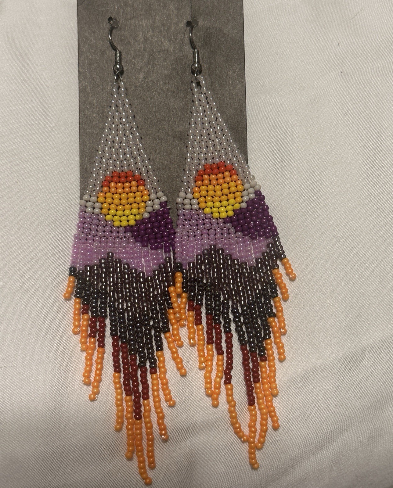 Long Beaded Dangle Earrings Boho Native Handmade Seed Bead Tassel Bohemian