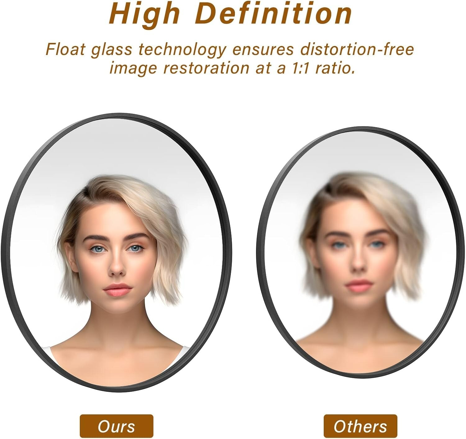 2x 30 Round Mirror Metal Framed Mirror Wall Bathroom Mirror, Black, 1.3in Thick
