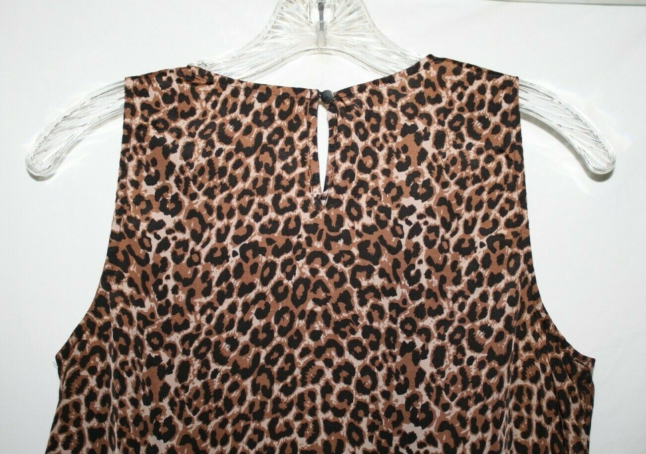 как выглядит Charming Charlie Misses SMALL Leopard Animal Tank Top Cami Black Asymmetrical фото