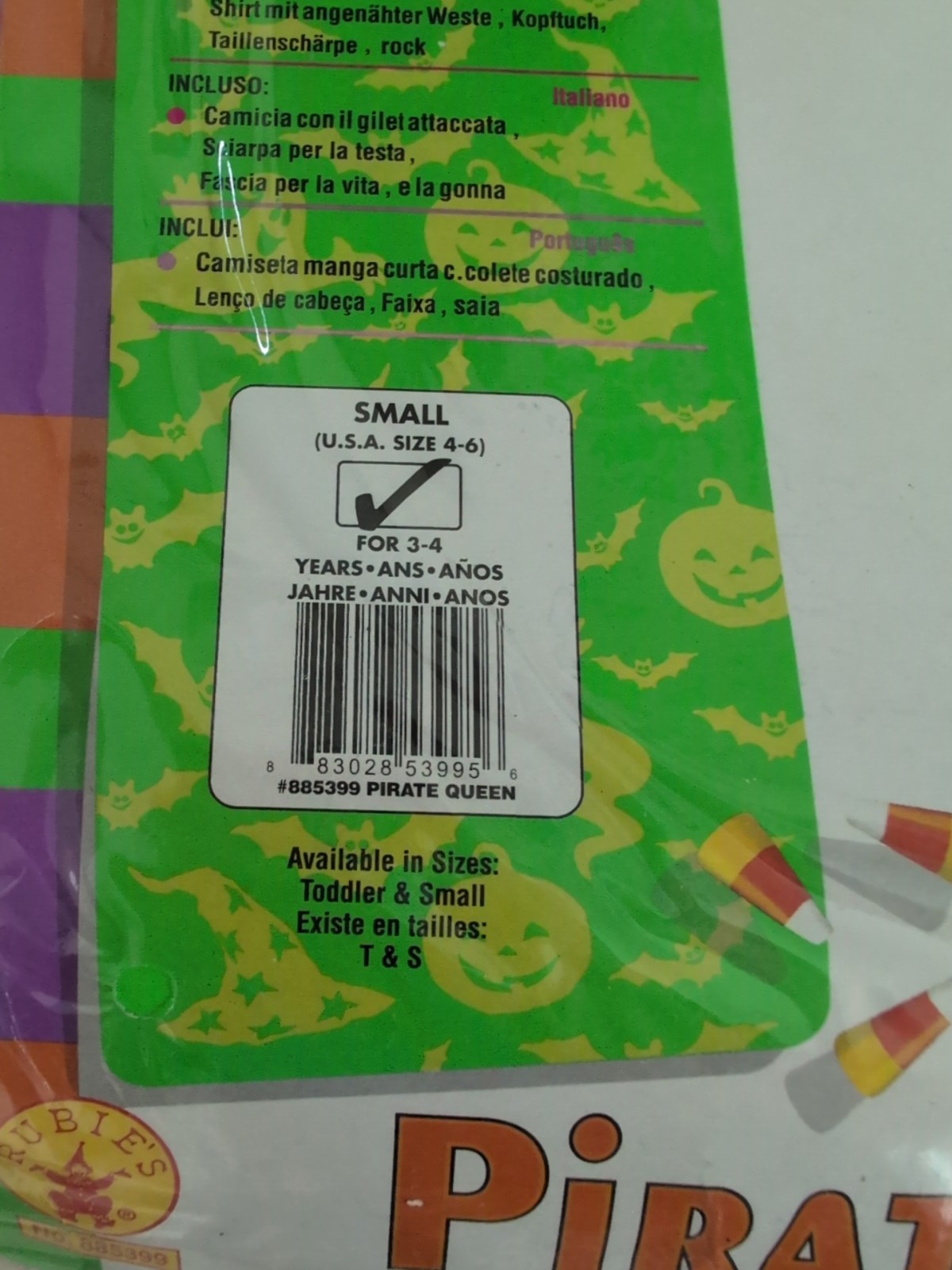Pirate Queen Child Costume Size Small Brand New By Rubie's 885399