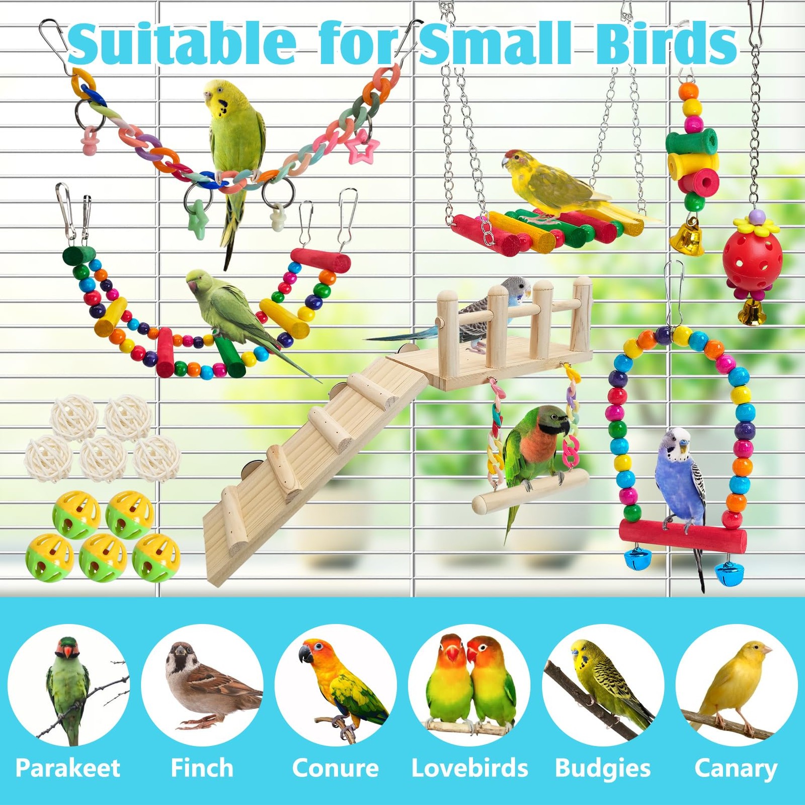 17Pcs Parrot Swing Toys Perches Platform with Bird Climbing Ladder Chewing Ha...