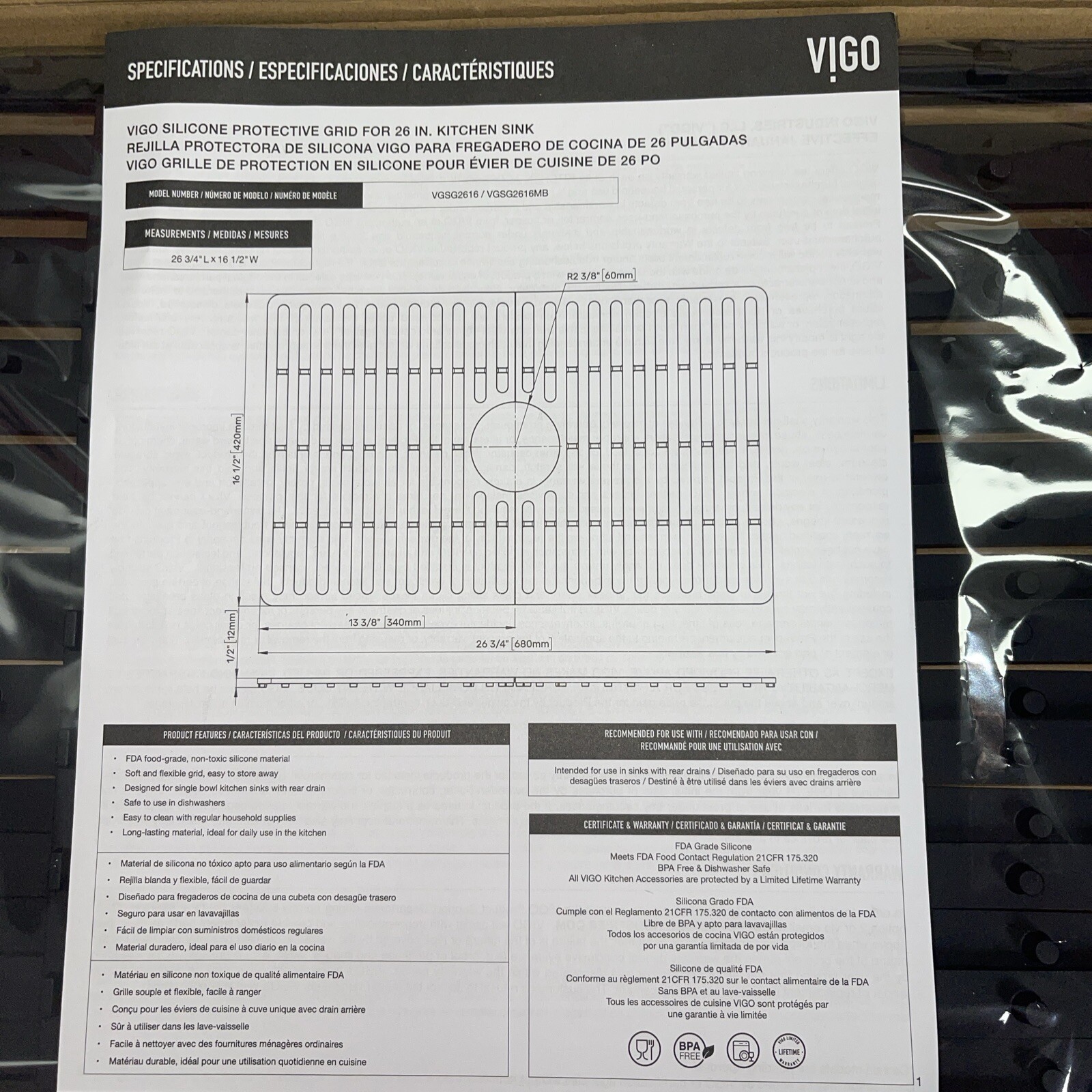 Vigo VGSG2616 16-1/2 L x 27 W Silicone Basin Rack - Black