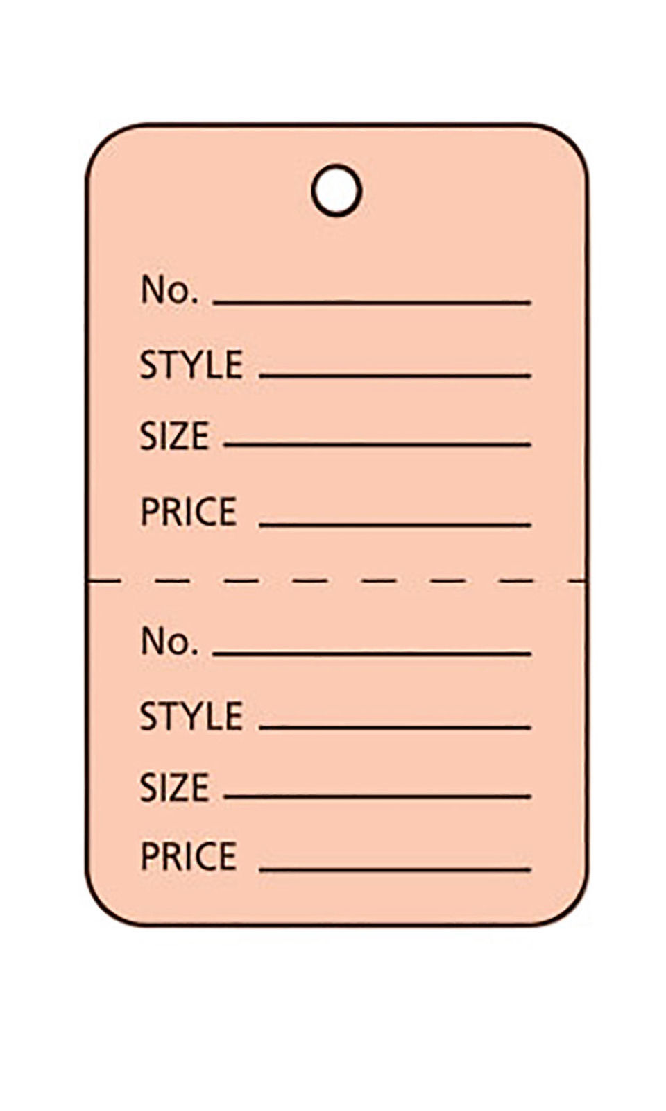 2000 Perforated Tags Price Sale 1 x 2 Two Part Pink Unstrung Tag Peach