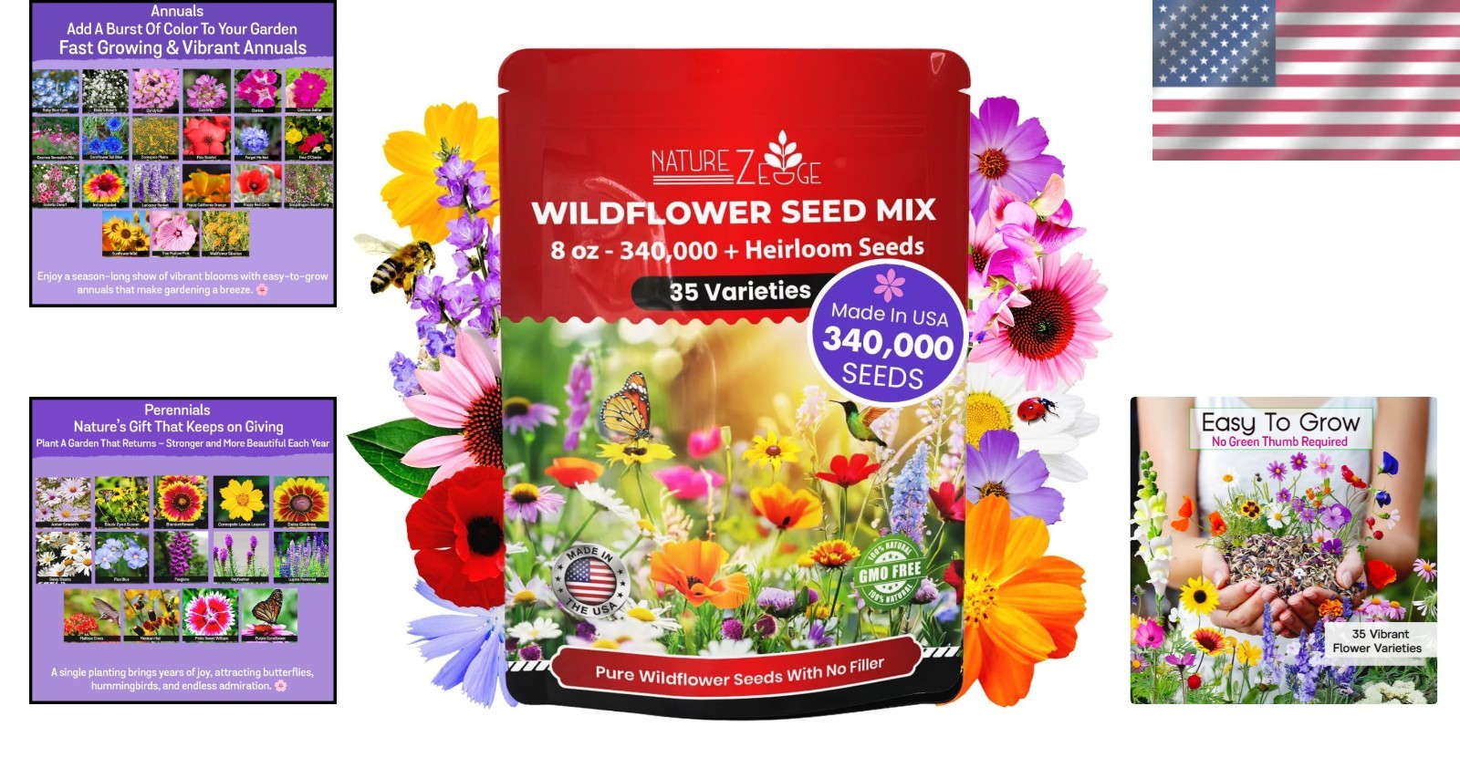 Diverse 35 Variety Wildflower Seeds - Great for Attracting Bees Hummingbirds