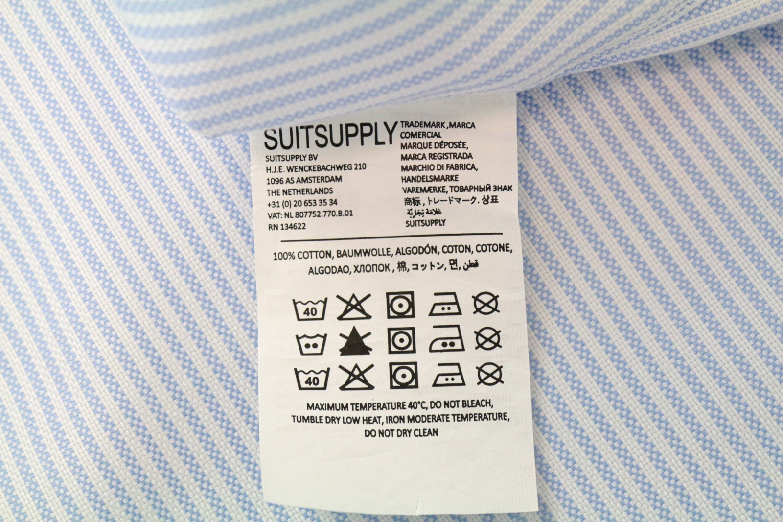 как выглядит SUITSUPPLY Mens Formal Shirt 37/14 1/2 Striped Blue Slim Pure Cotton Long фото
