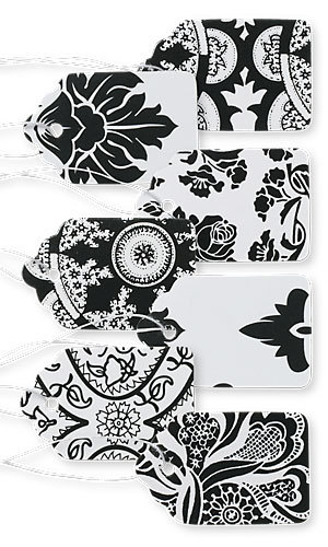 как выглядит 500 Assorted Black White Lace Paper Price Tags 1" x 1 " Merchandise Strung фото