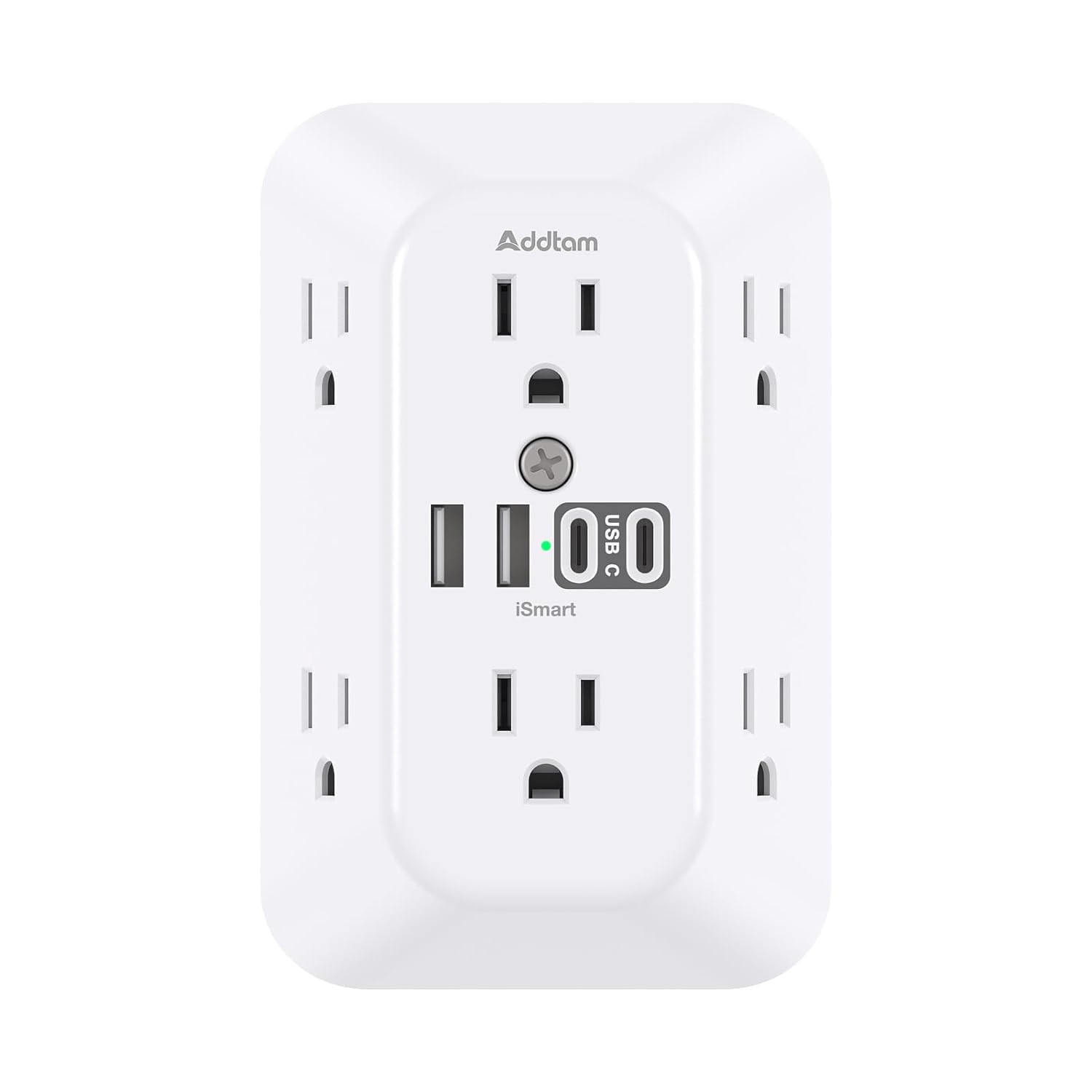 Surge Protector Wall Outlet Extender 6 AC Outlets 4 USB Ports 2 USB-C Multi Plug