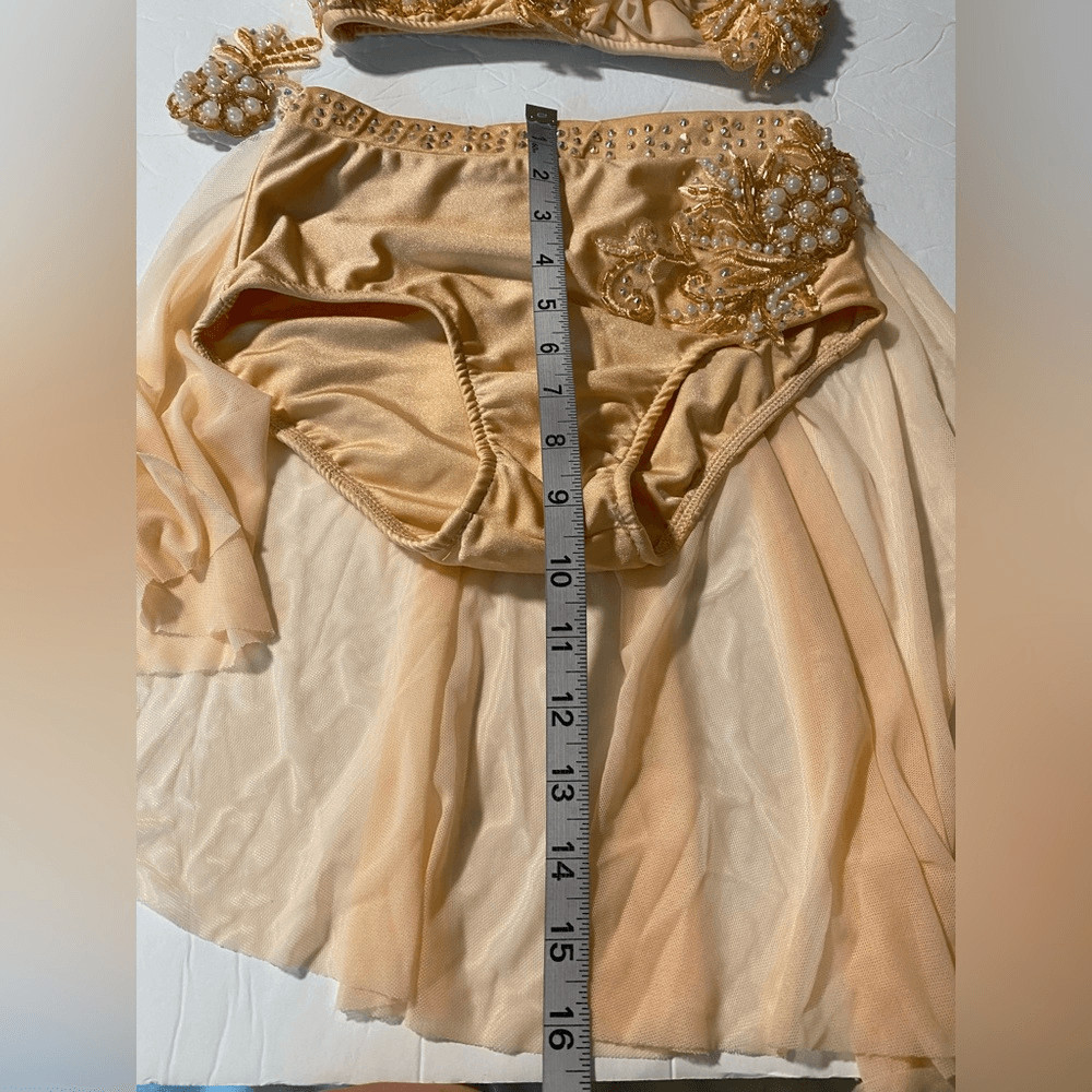 Glamour solo dance costume peach pastel pearl rhinestone 2 piece LC-large child