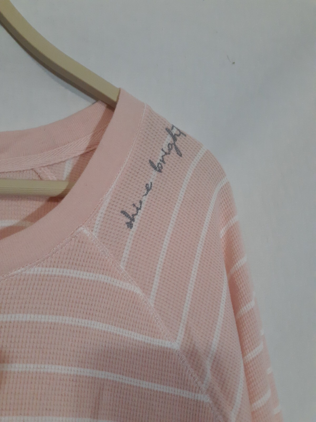 как выглядит PJ Salvage Blush Pink White Striped Thermal Top Size 2X NWT фото