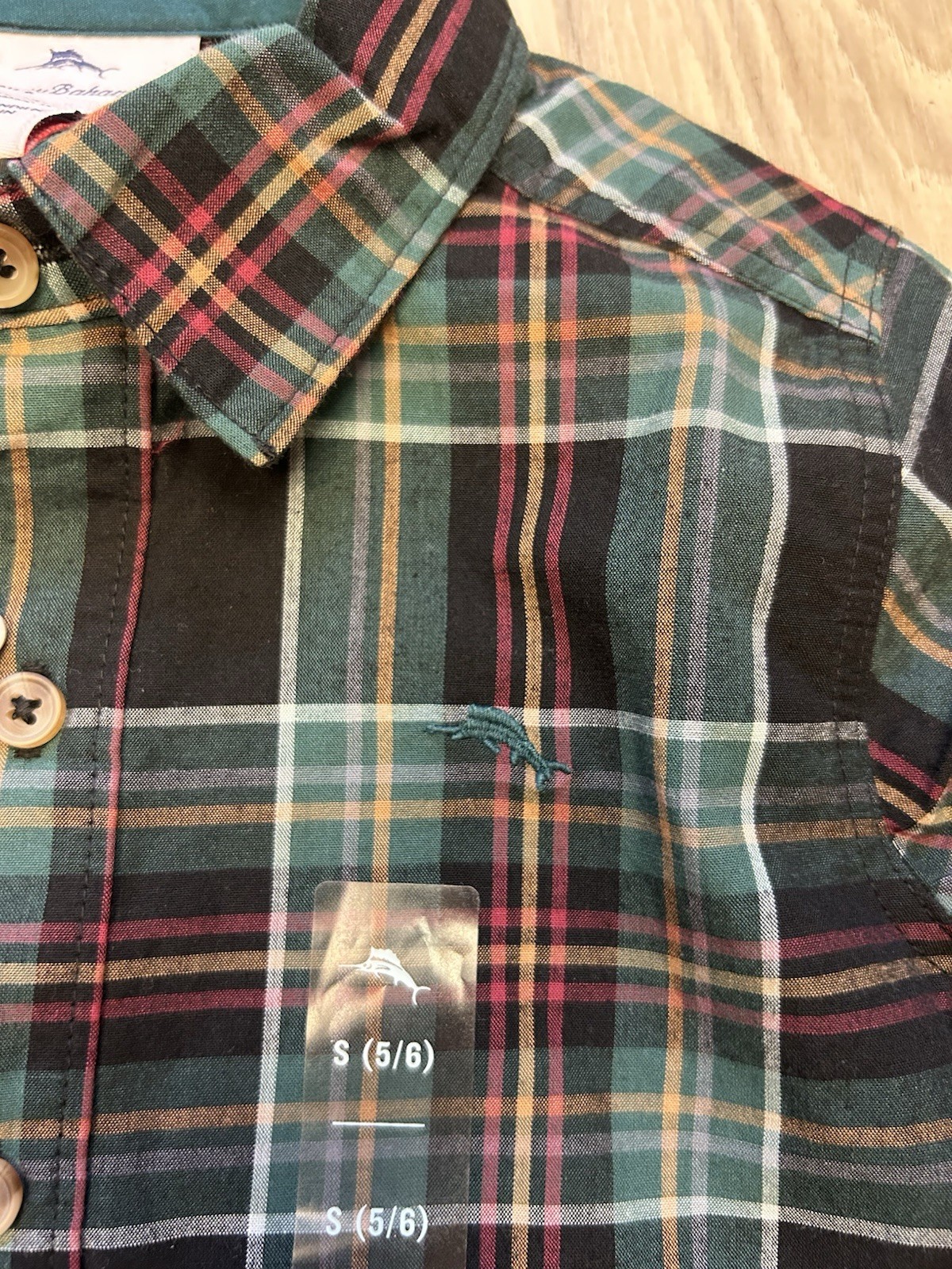 NEW Tommy Bahama Shirt Kids Boys Small 5-6 Button Down Plaid Flannel Logo Casual