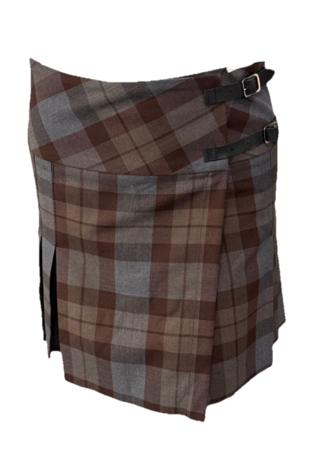 Gaelic Themes Scotland Tartan Kilt Skirt Plaid Brown Gray 27 Waist Buckle Wrap