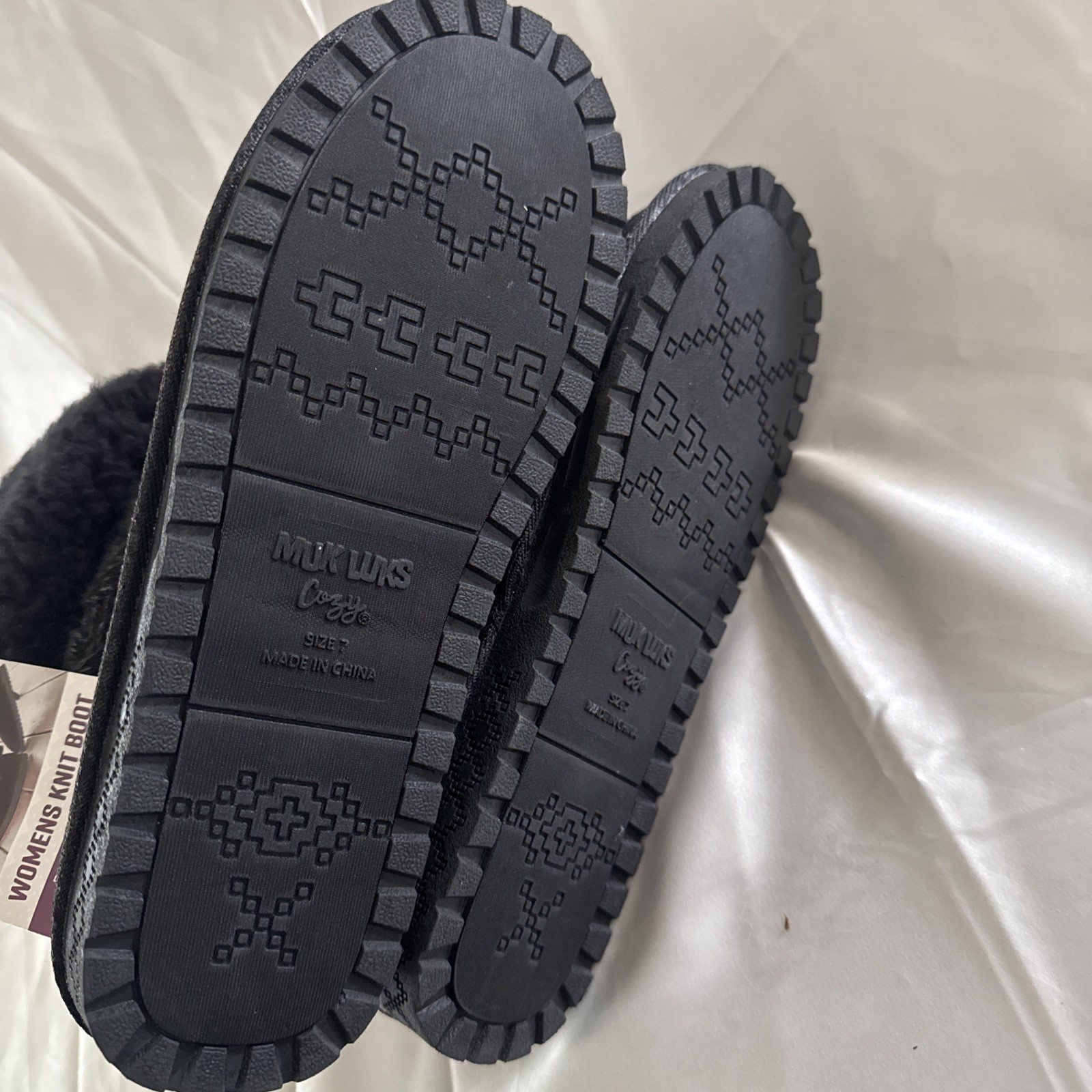 как выглядит NEW MUK LUKS Womens Sz 7 Black Knit Boot Bootie Faux Suede Fur Wear Up or Down фото