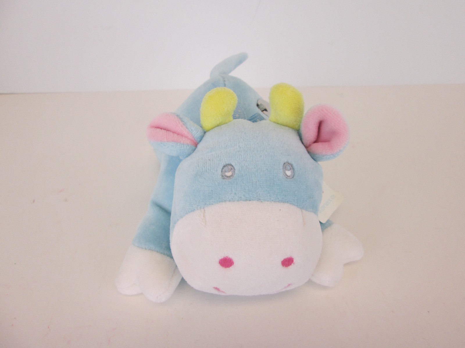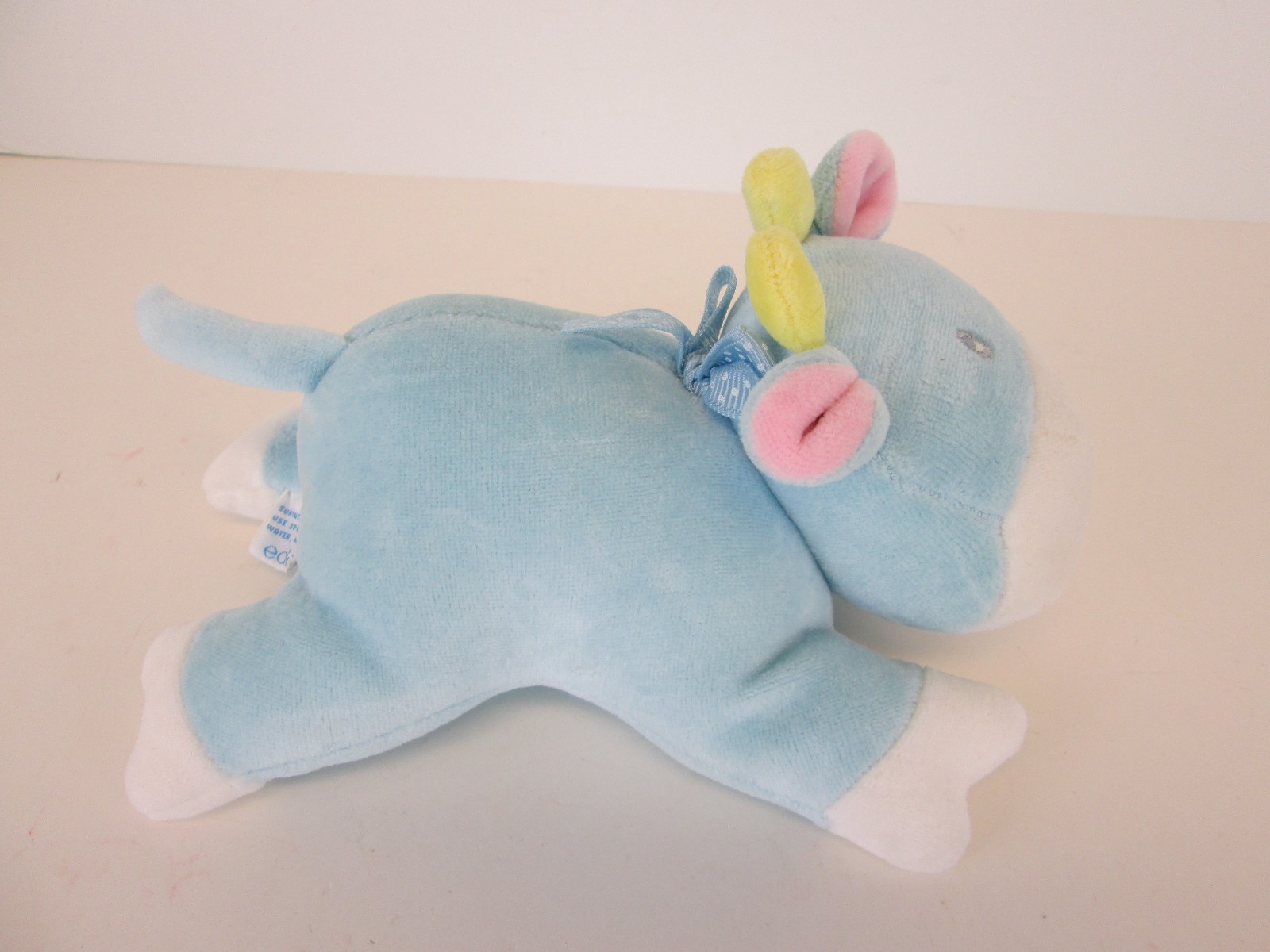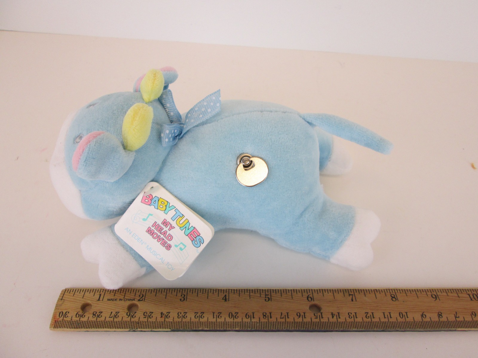 как выглядит Vintage Eden Musical Cow Plush Wind Up Blue Pastel Moving Head 8