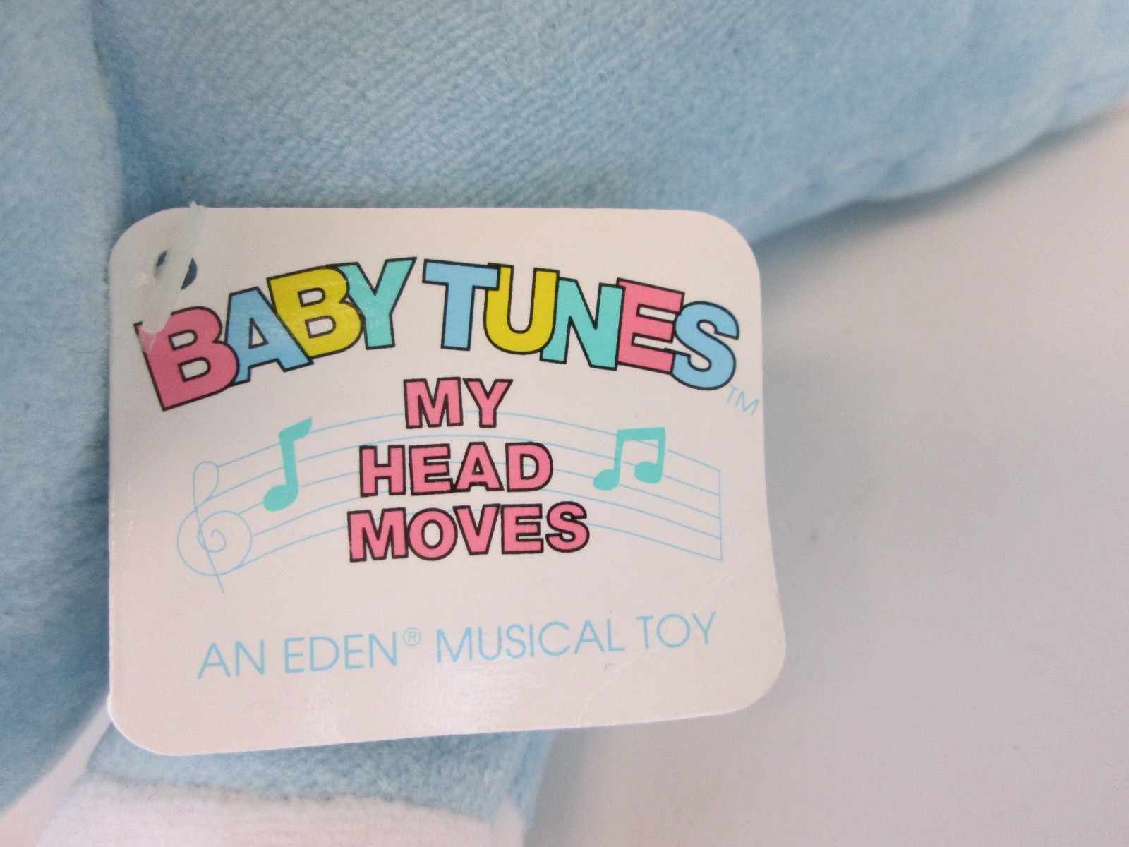как выглядит Vintage Eden Musical Cow Plush Wind Up Blue Pastel Moving Head 8 Tag фото