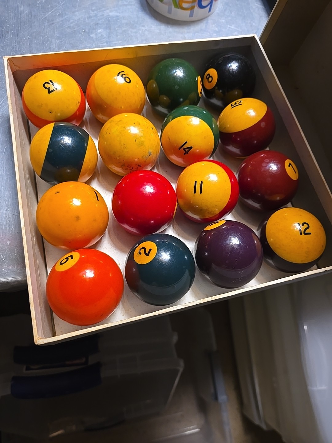 как выглядит Vintage Crest Billiard Ball Set Complete W/ Box Made In England фото