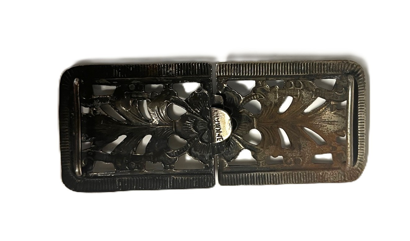 Antique Victorian Clip Metal Art Deco Belt Buckle- Germany, Marked, Silver Toned