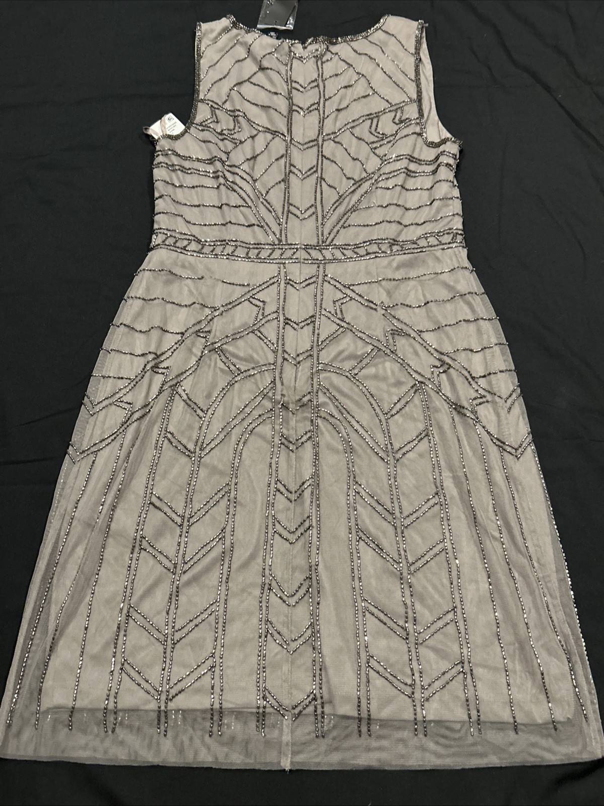 как выглядит Papell Studio Beaded Chiffon Gray Silver Cocktail Evening Dress Size 10 A39 фото