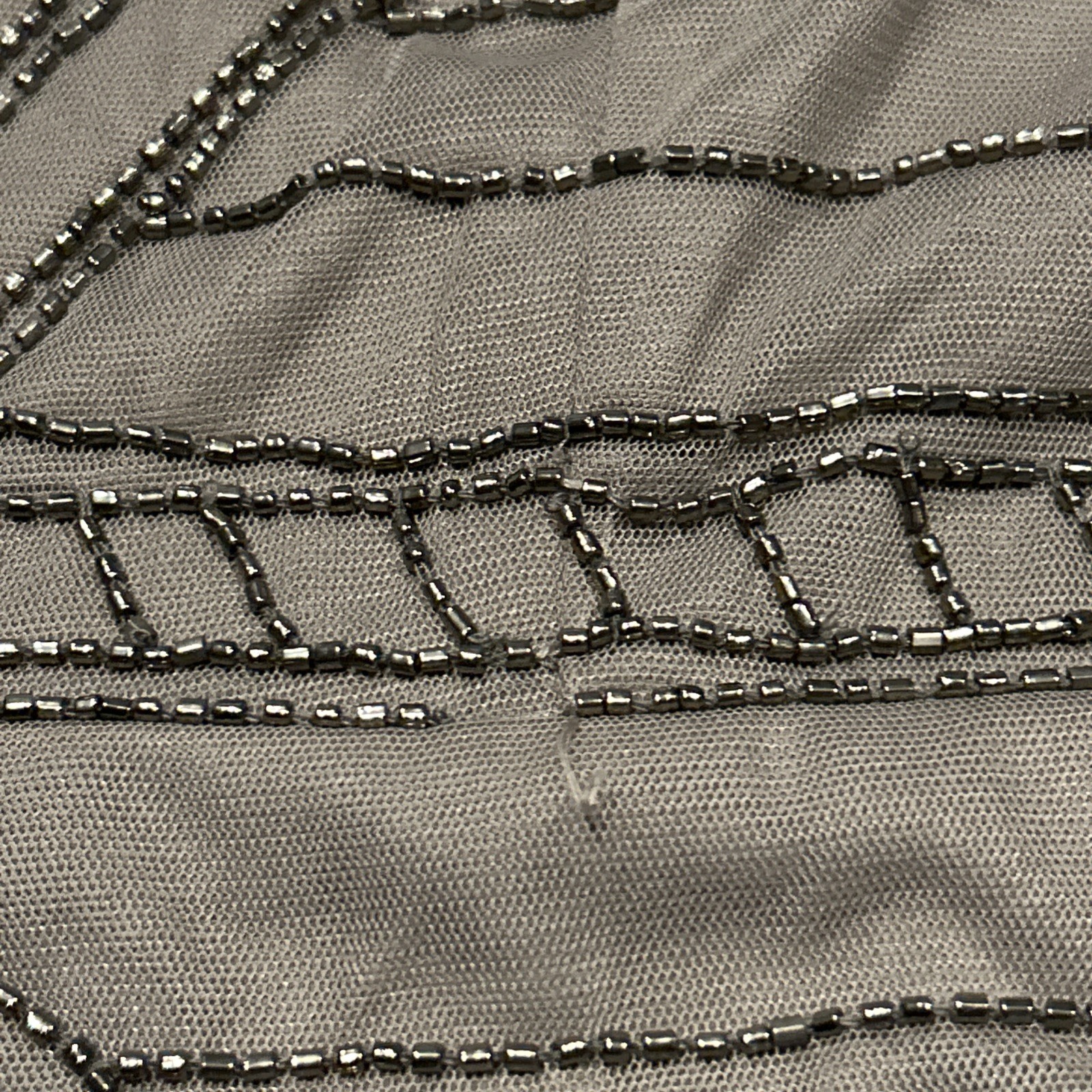 Papell Studio Beaded Chiffon Gray Silver Cocktail Evening Dress Size 10 A39