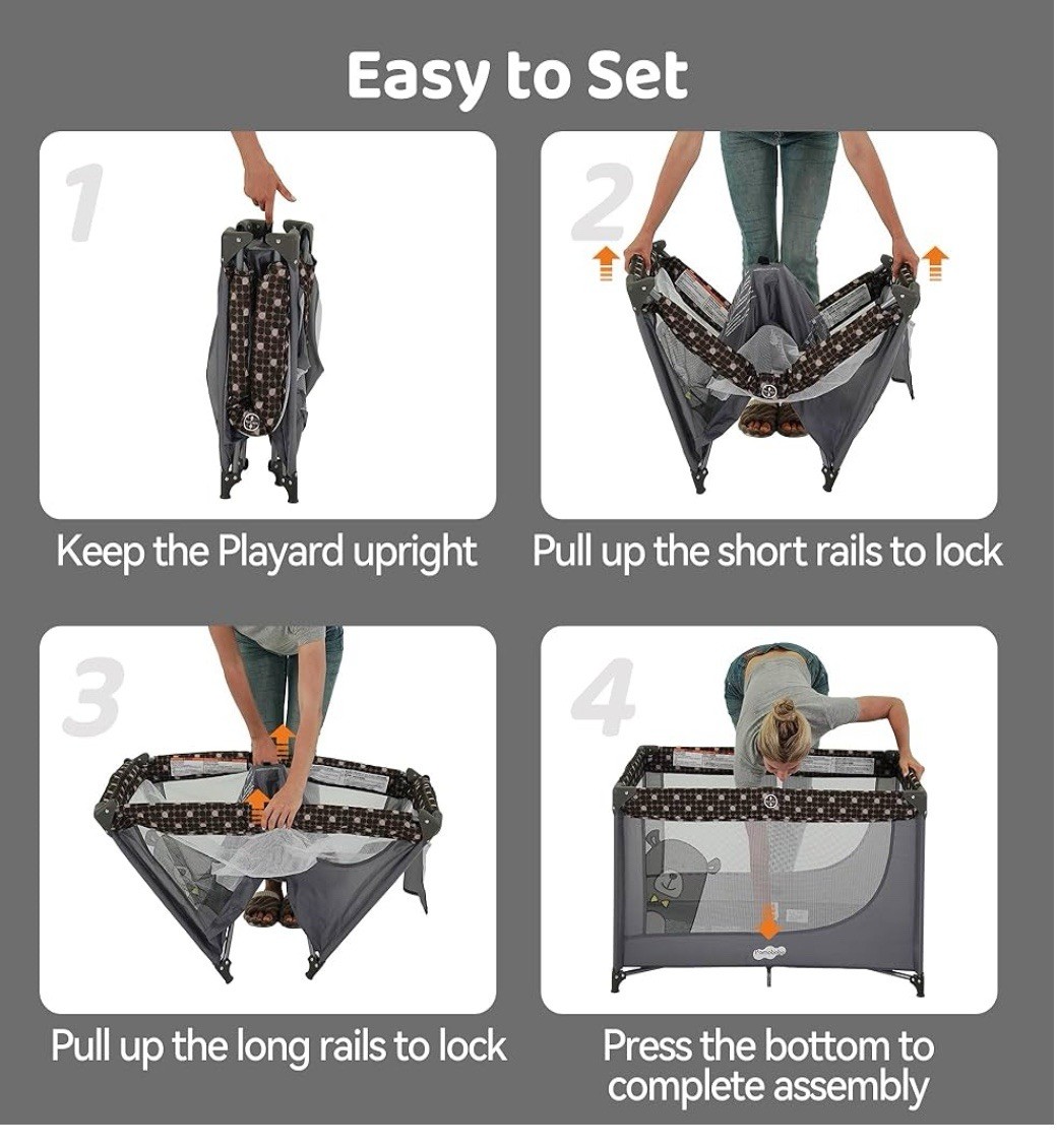 как выглядит Pamo Babe Portable Enclosed Baby Playpen Crib with Mattress and Carry Bag, Gray фото