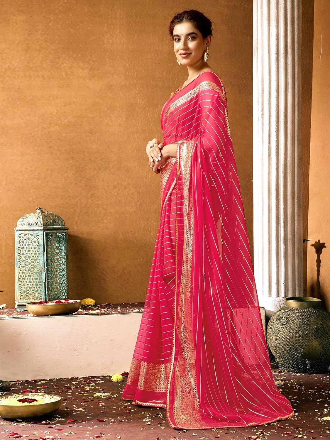 Women's Georgette Foil Print Gota Lace Work Saree with Unstitched Blouse Piece
